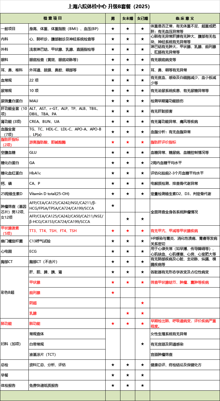 上海六院体检中心 无忧升级B套餐(男/女未婚)